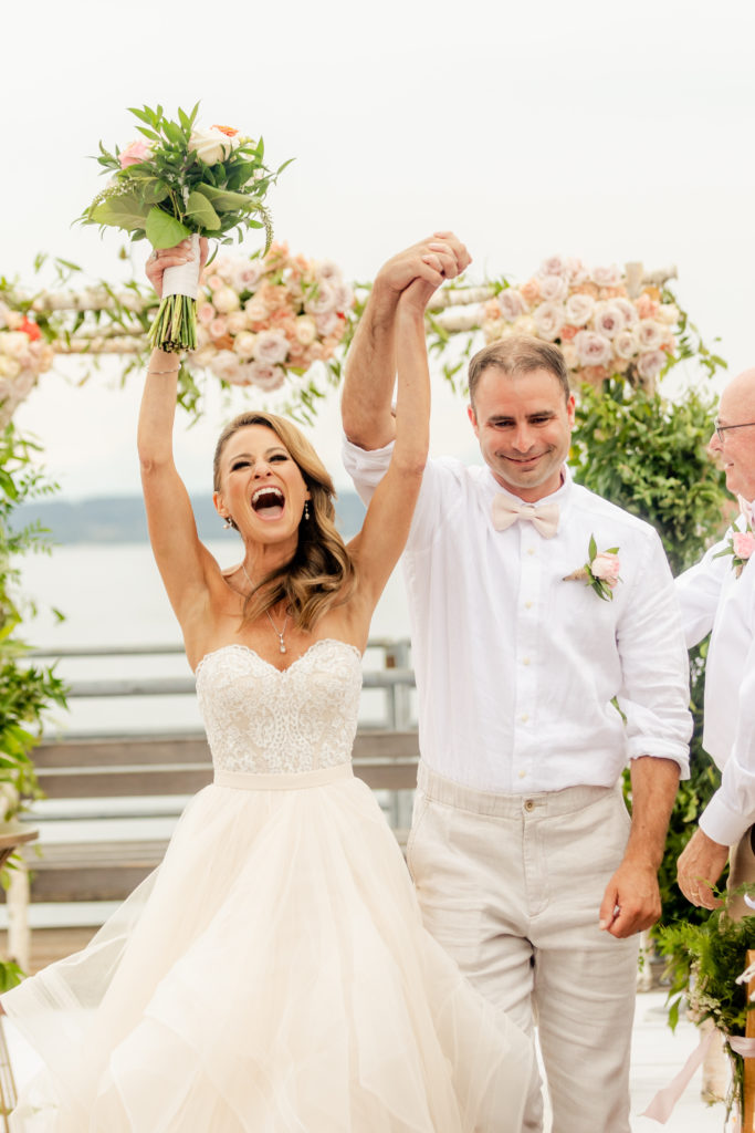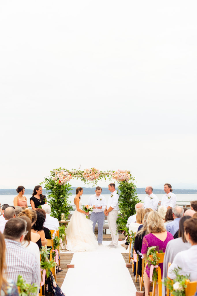 My lovely client Lea knew Ray’s Boathouse would perfect her wedding day because “When it came to choosing a venue, Ray’s was a natural fit. It’s steps away from the beach where Scotty proposed. Also, it’s an icon of the PNW. We wanted to celebrate outdoors, in nature, basking in this beauty. There is nothing like a Seattle summer with this view. The scenery makes the venue so the space is already elevated. Having all of the people that I love together in the outdoor space filled me up.“