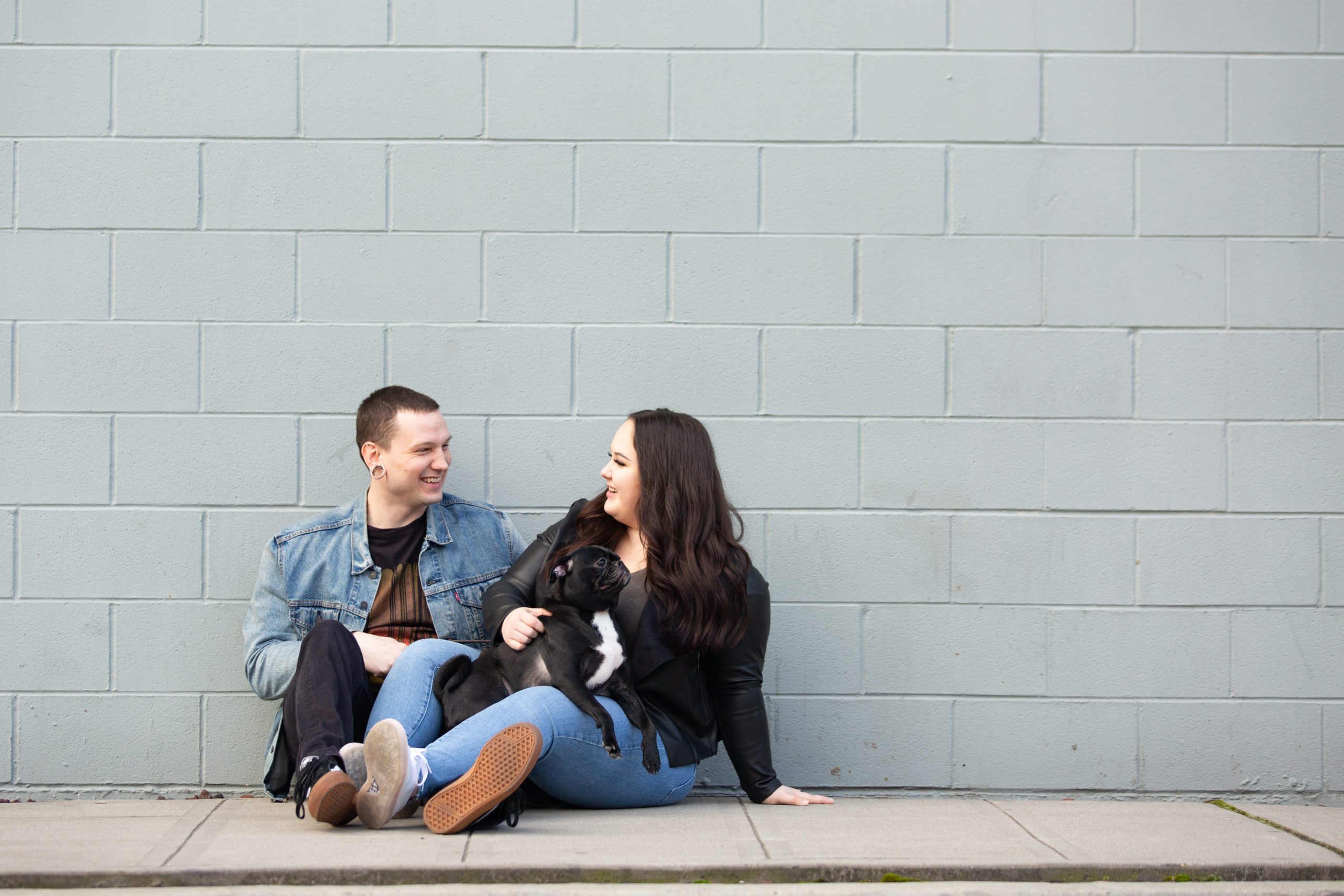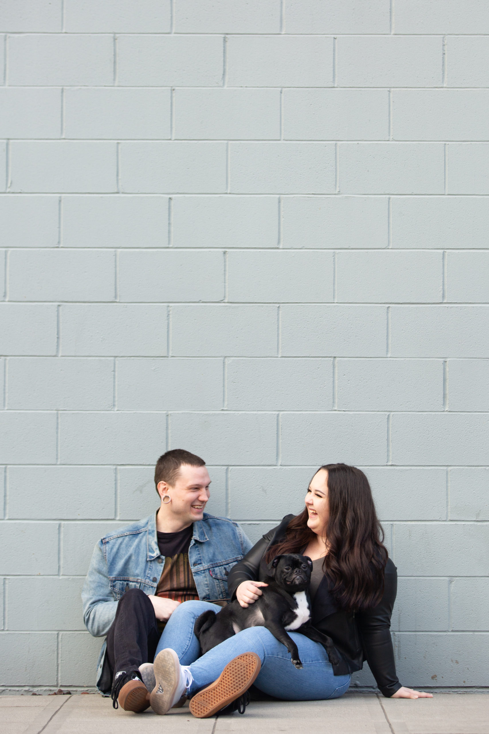 We ended the session at Great Notion Brewery and I was happy to introduce Adam (a fellow beer lover) to my favorite brewery! Morgan had the sweetest thoughts to share from our time together, “Our engagement session was SO MUCH FUN. We had so much fun with you and felt like we were all friends. Posing wasn’t awkward at all and felt natural. We were so excited to bring Bugsy with us and you were so great working with him. The urban locations were so perfect. I was so impressed with the places you picked.” My heart!!